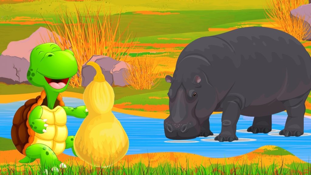 ???? Oops!! Let’s try again. The tortoise found it by the water, or river.